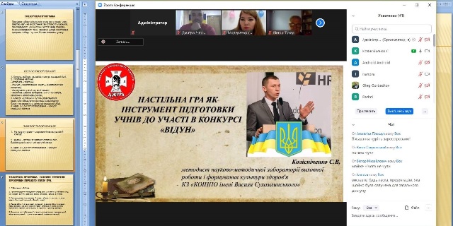 У роботі онлайн семінару-практикуму взяли участь 75 представників органів управління освітою районних державних адміністрацій, міських, селищних рад об’єднаних територіальних громад, керівники закладів освіти, керівники гуртків «Сокіл» («Джура»), виховними роїв, вчителі закладів освіти області.